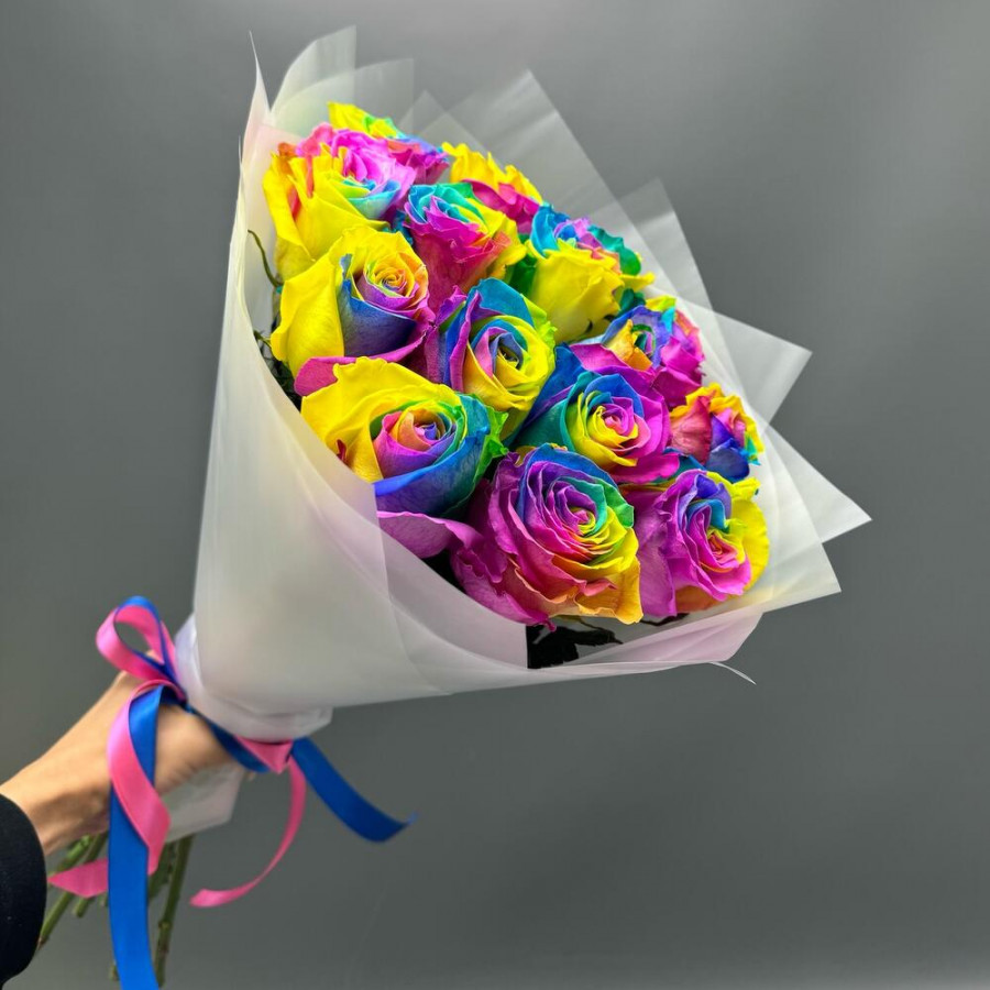 Букет из 15 радужных роз в Дубне