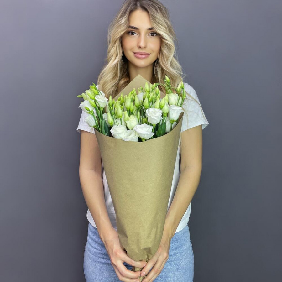Букет 5 белых эустом в крафте фото 2