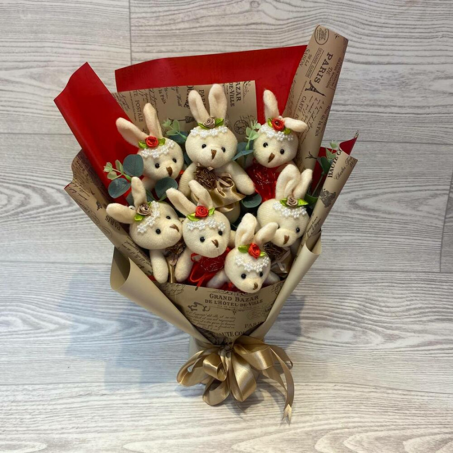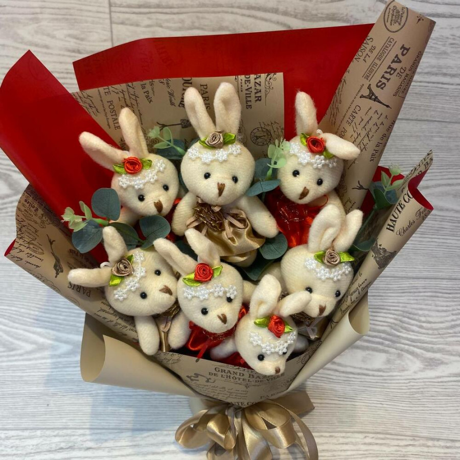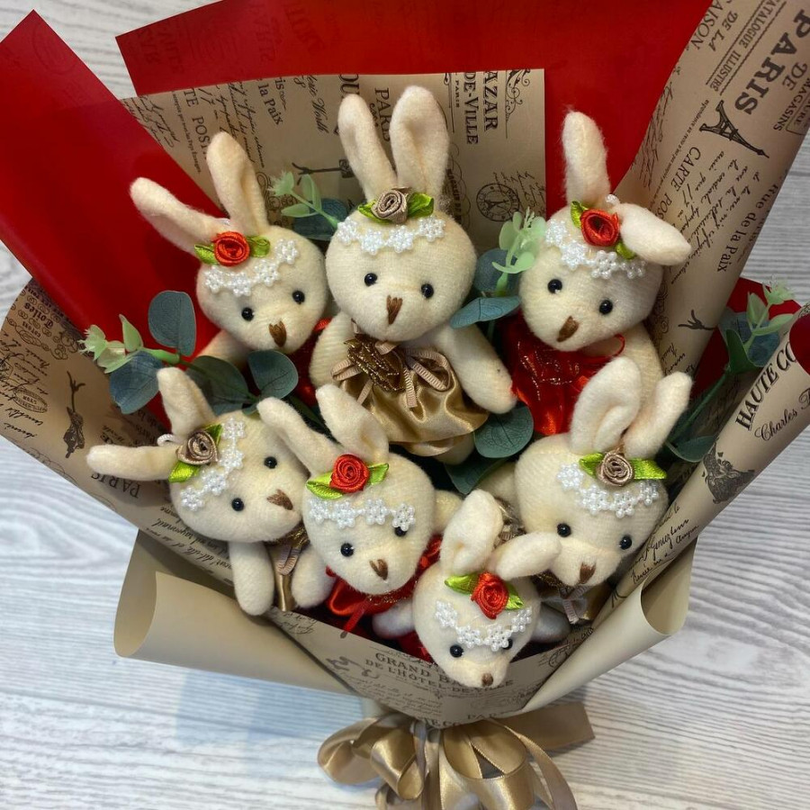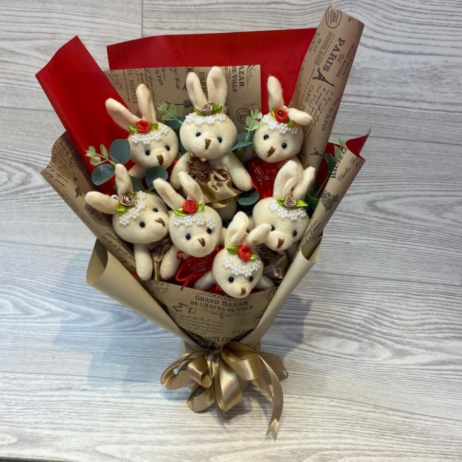 Букет из игрушек «Зайки» 7 шт. в Дубне