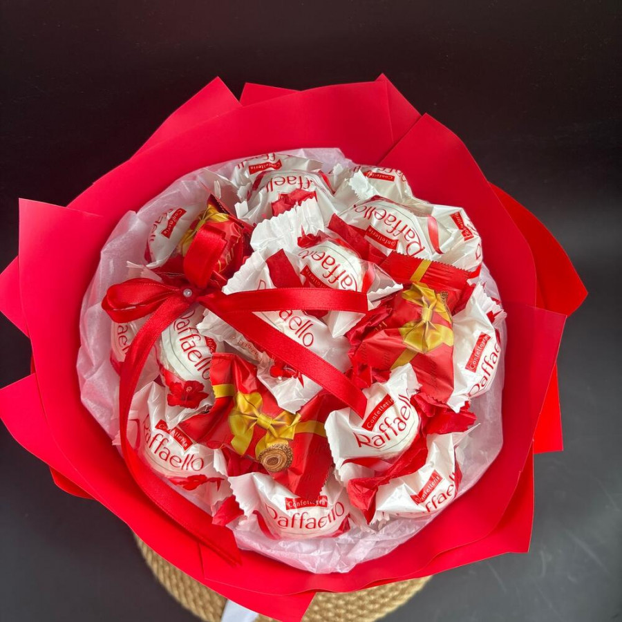 Конфеты Raffaello - 15 шт. Целлофан прозрачный - 1 шт. конфеты landrin - 3 шт. каркас технический с упаковкой - 1 шт.