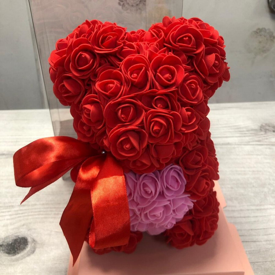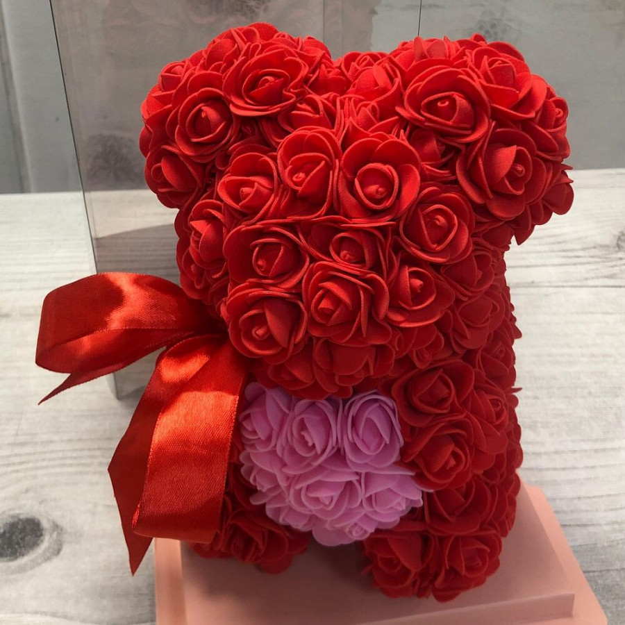 Красный мишка из роз в Дубне